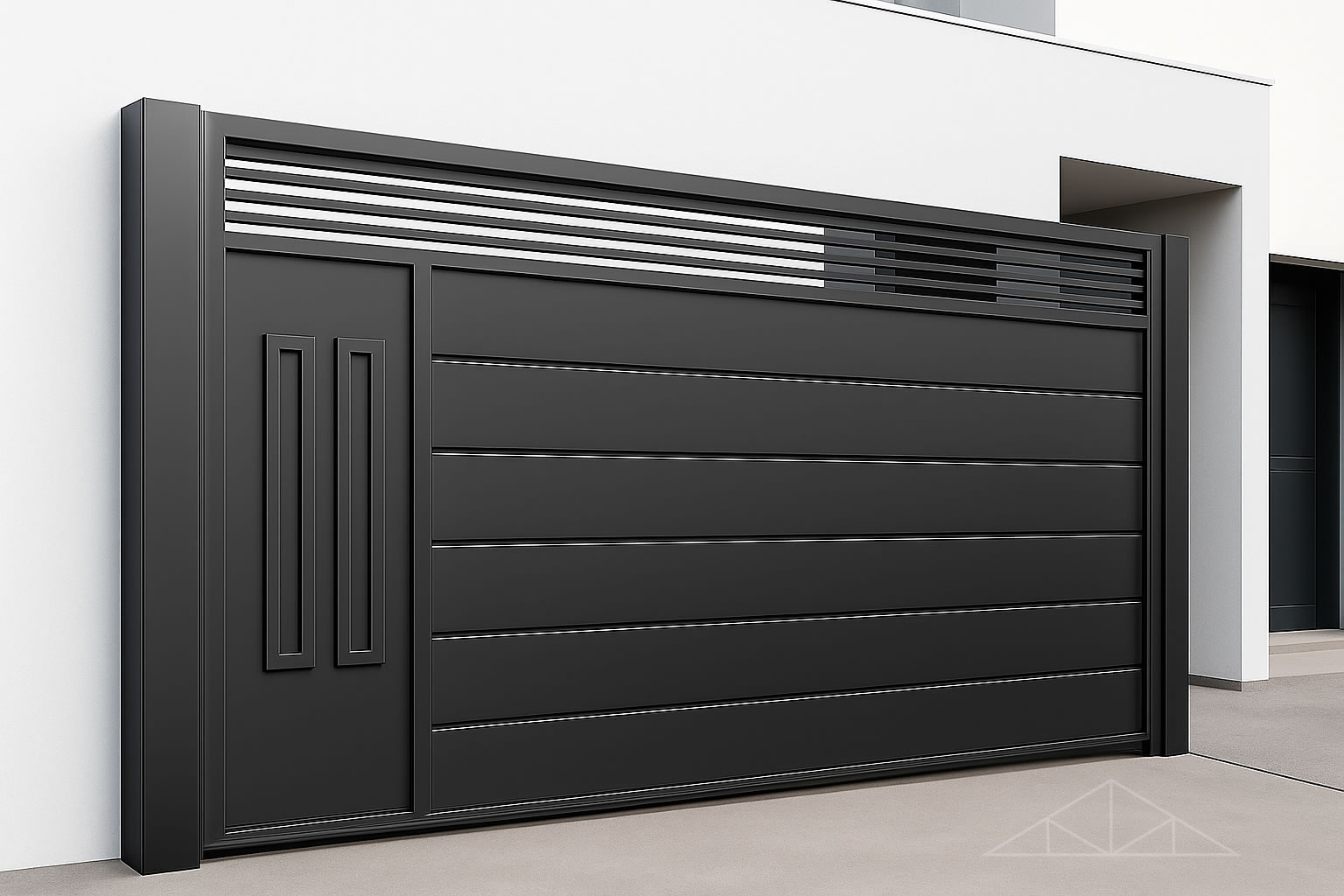 Portões residenciais e industriais com estrutura reforçada e acabamento profissional.